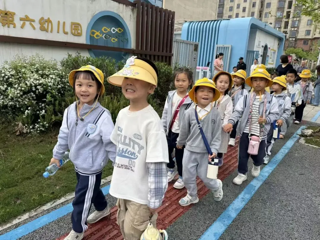 大班的孩子们精神饱满地在幼儿园门口集合。迎着朝阳踏着晨光,我们开启了一场充满惊喜的探秘之旅!