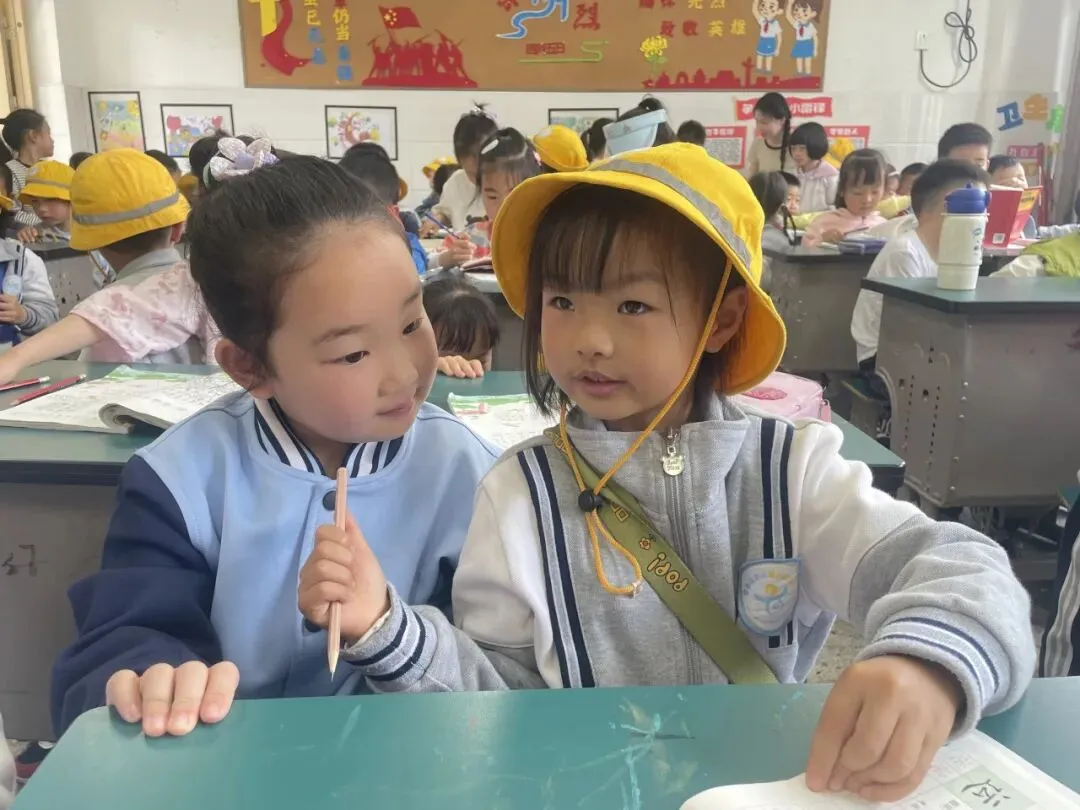 孩子们与哥哥姐姐同坐听讲,模仿哥哥姐姐端正的坐姿,认真参与课堂互动,沉浸式感受小学课堂的秩序与氛围。