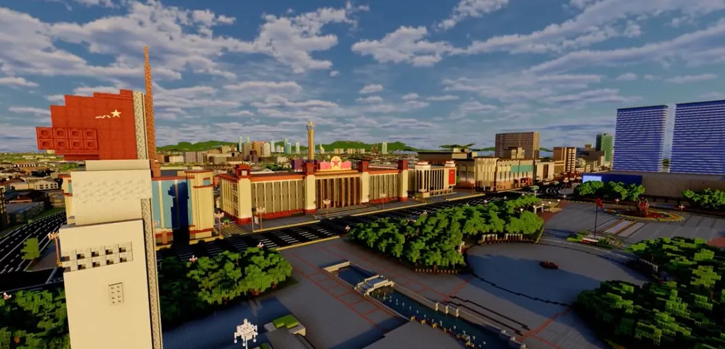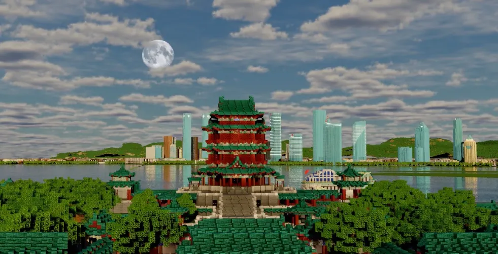 从八一广场到江西省美术馆,从民德路到中山路,一个由方块构成的“虚拟南昌”正在《我的世界》游戏中悄然成型。这项名为“物华天宝南昌复原计划”的项目,由22岁的大四学生刘航辰于2026年1月底发起。如今,他带领着一支15人的团队,初步完成了南昌东湖区部分街区的1:1复刻。