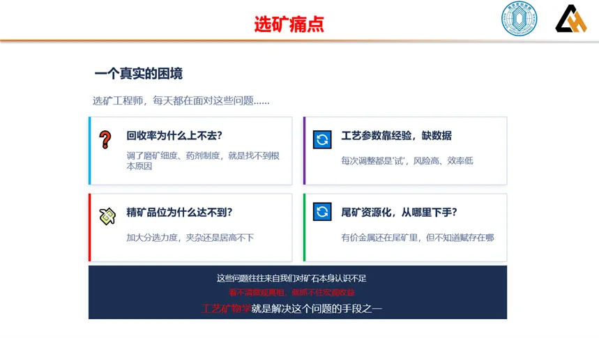 当前选矿行业普遍面临回收率上不去、精矿品位不达标、工艺参数靠经验、尾矿有价金属挖潜难等共性难题,根源往往在于对矿石 “微观真相” 认识不足。