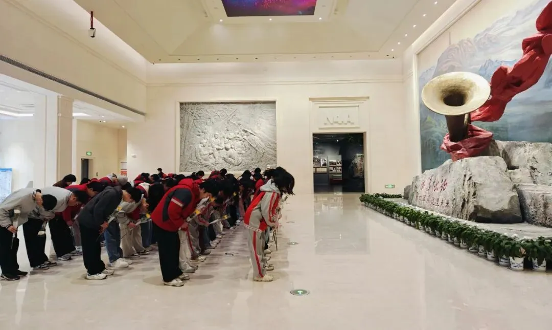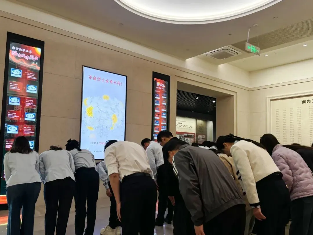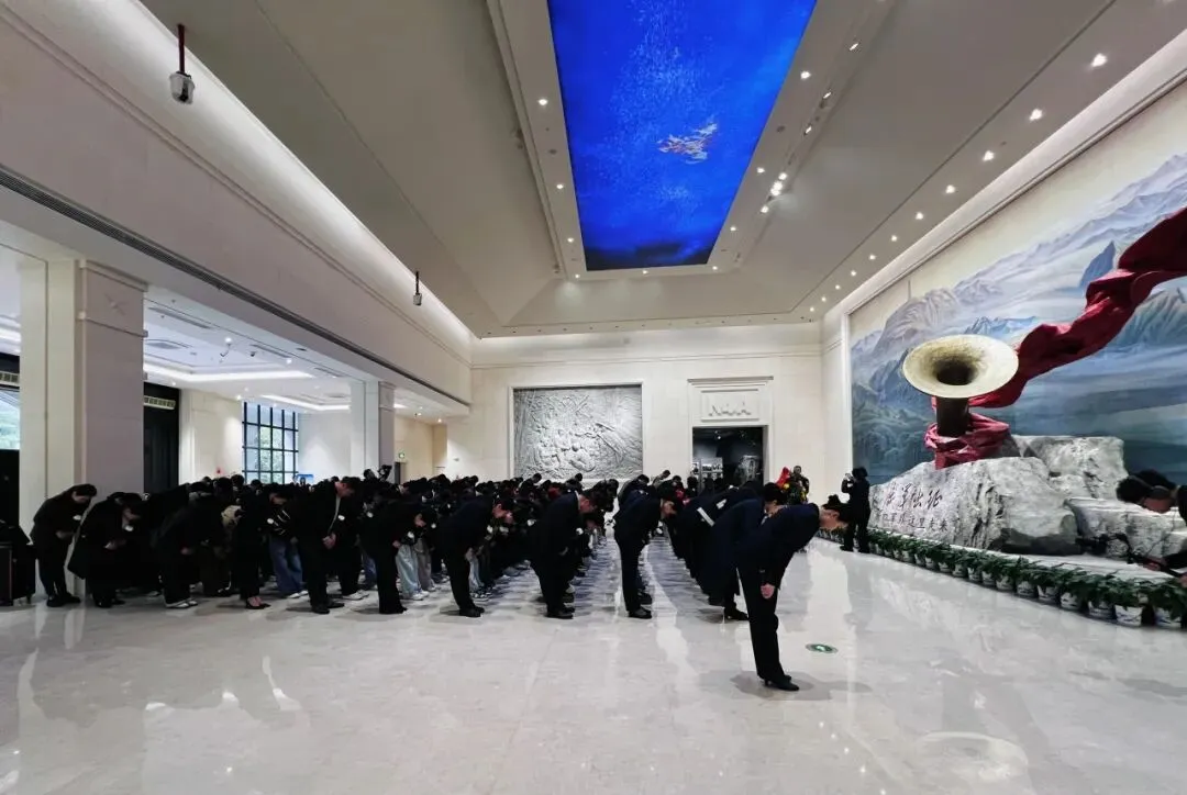 奏国歌、默哀、敬献花篮、行三鞠躬礼,仪式简朴而庄重。随后,大家走进《铁军出征》基本陈列展厅,在历史文物与照片前驻足回望,追寻铁军足迹,赓续红色血脉。