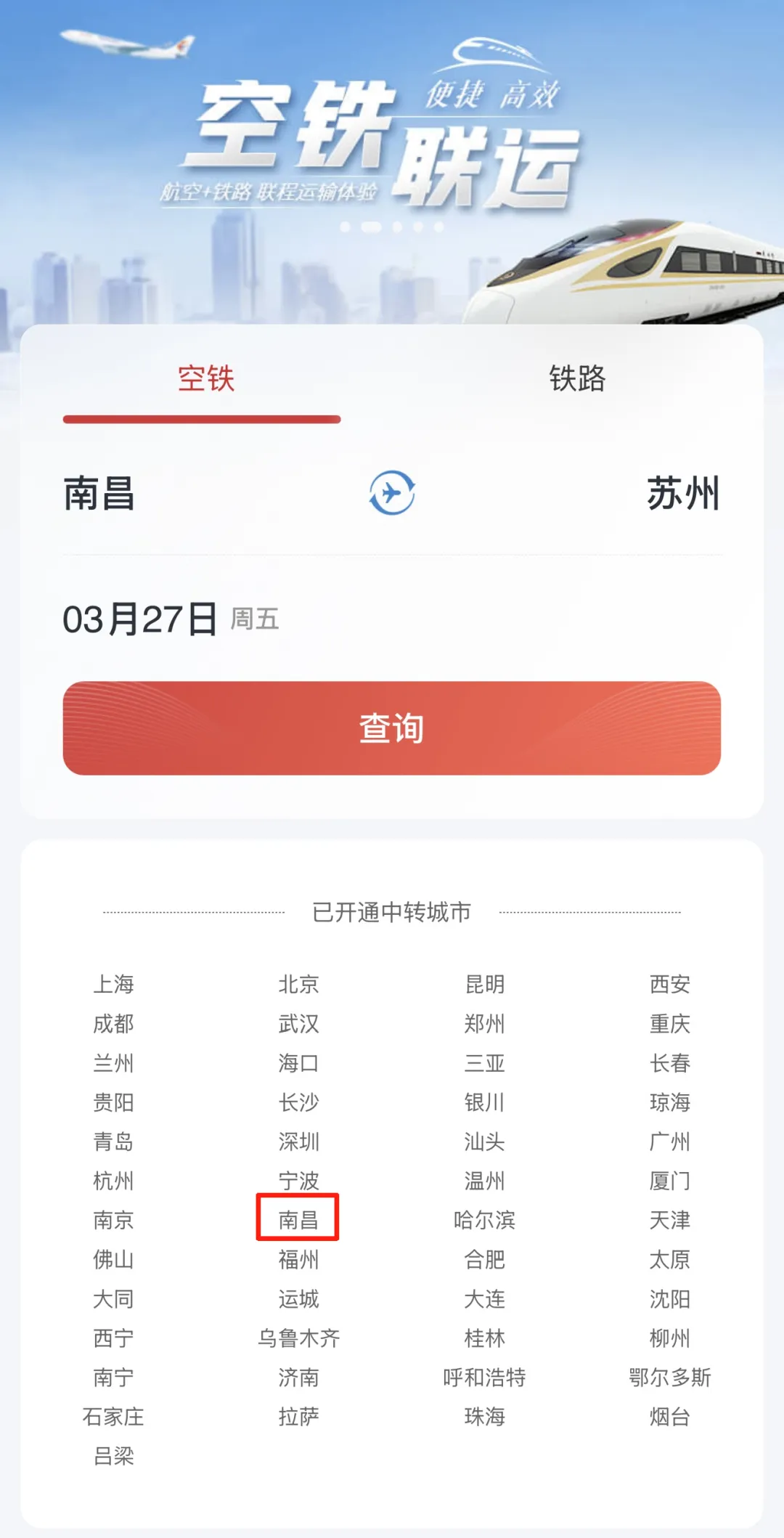 南昌进出港,空铁联运+航空段直减,双重福利加持,能让您花更少的钱,走向更宽广的世界!