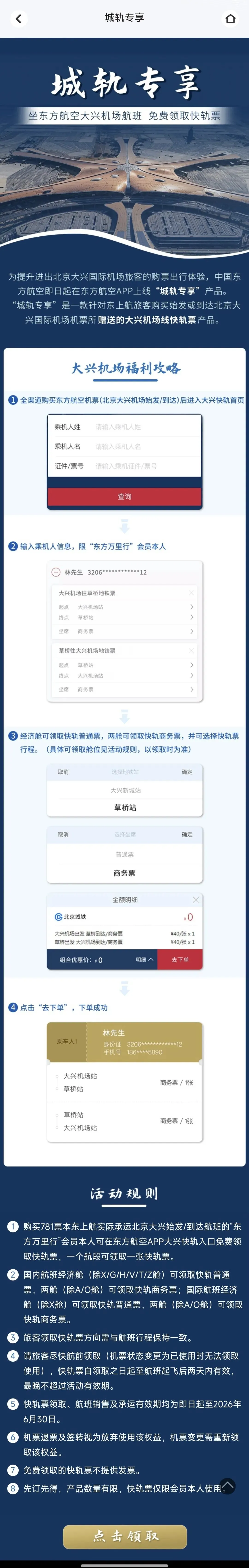 为提升进出北京大兴国际机场旅客的购票出行体验,中国东方航空即日起在东方航空APP上线“城轨专享”产品。 “城轨专享”是一款针对东上航旅客购买始发或到达北京大兴国际机场机票所赠送的大兴机场线快轨票产品。
