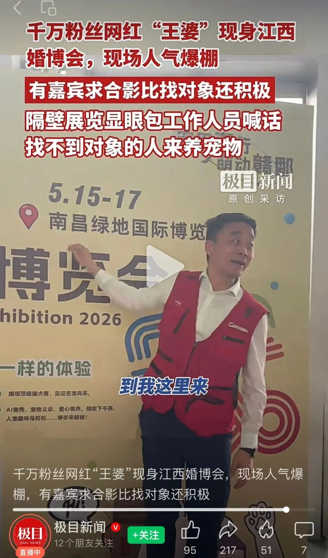 4月11—12日,2026江西婚博会暨婚庆文旅产业融合展在南昌绿地国际博览中心举办。展会期间,火遍全网的“开封王婆”赵梅来到现场,开启说媒活动,让为期2天的婚博会喜事连连。