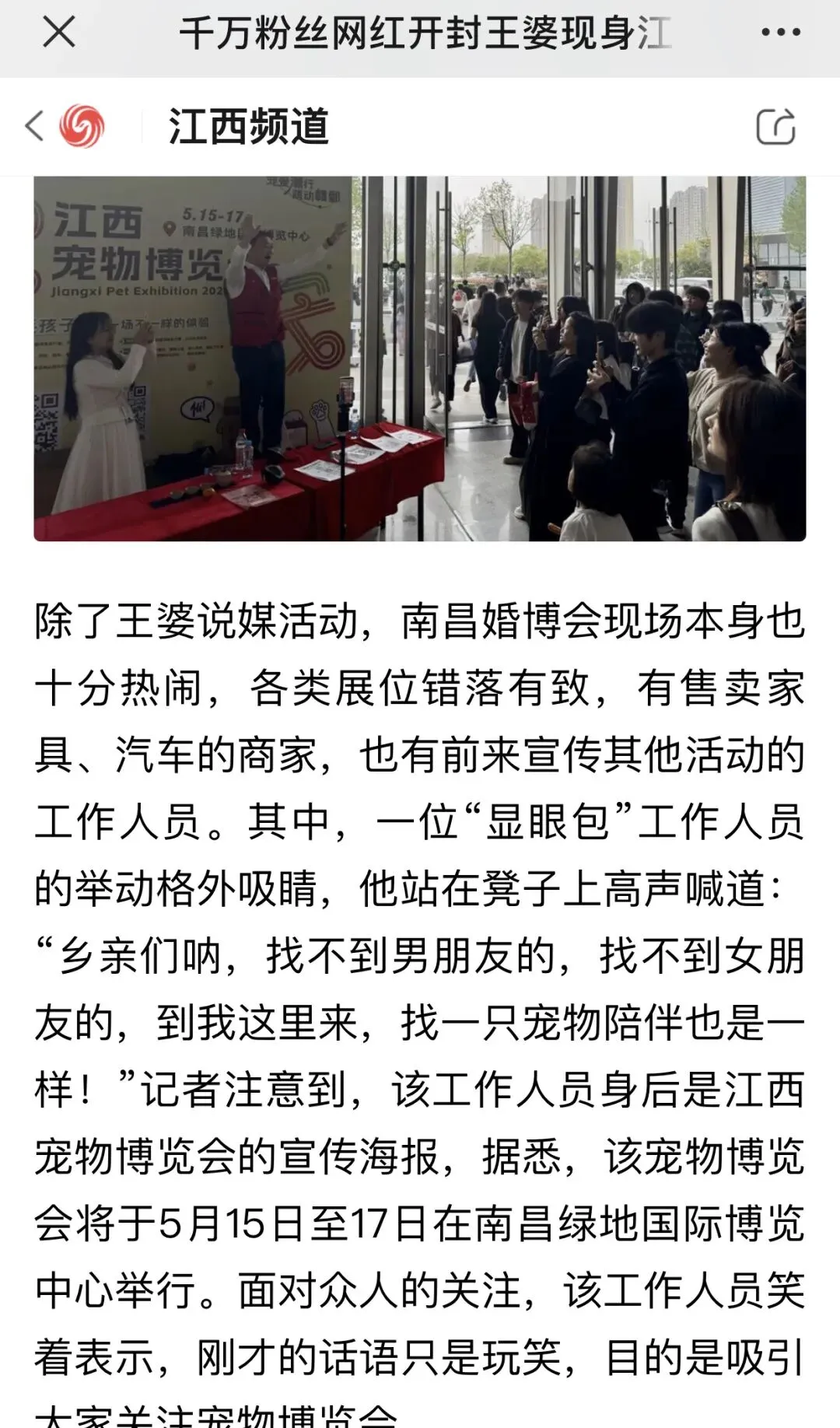 “开封王婆”说媒轰动南昌,宠博会“显眼包”也火出圈了!现在他喊你来撸宠啦~~