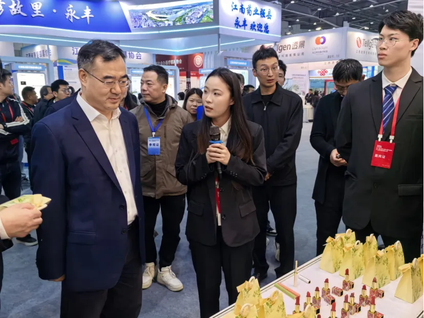 近日,2026第二届江西(进贤)医疗器械产业高质量发展大会在进贤县国际会展交易中心举行。南昌医学院党委委员、副校长叶耀辉带队参会。我校药学院研制的“中药+”口红、检验医学院师生团队研制的自研金标试剂盒等系列特色成果现场参展,吸引了不少参展商代表和游客参观体验。
