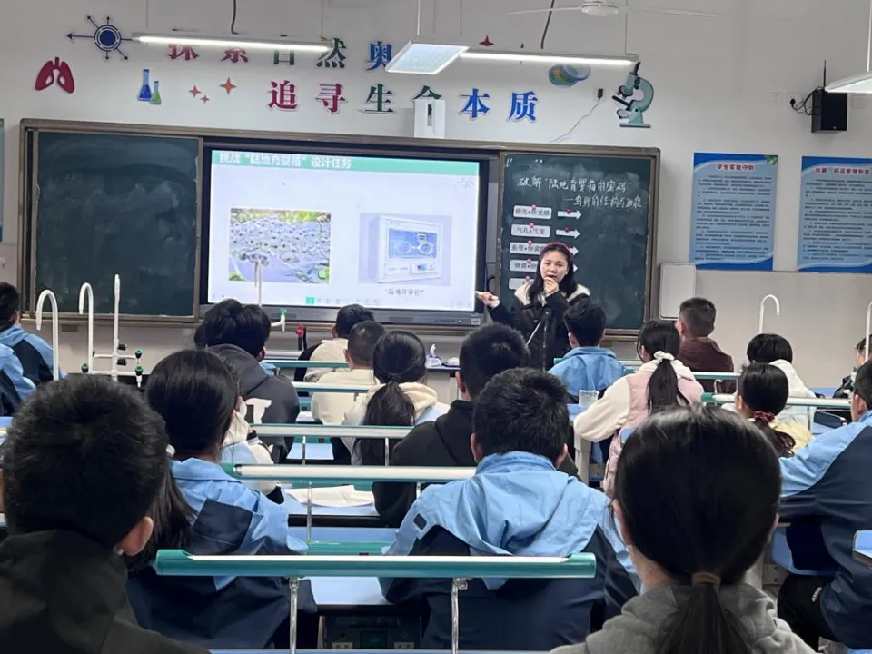 湾里实验学校温老师以破解“陆地育婴箱”密码为情境,围绕防蒸发、供营养、供氧气三大任务,通过握卵壳、防水测试、热水探气孔、注射气体等实验,从功能推导结构,课堂生动有趣、探究味十足。