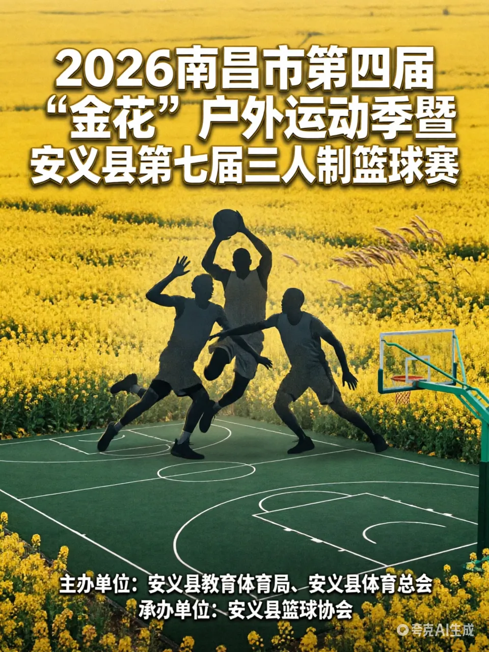 2026年3月21日至22日,安义县元点广场篮球场迎来了一场速度与激情的碰撞。作为2026南昌市第四届“金花”户外运动季的重头戏,安义县第七届三人制篮球赛在此火热开赛。本次比赛由安义县教育体育局、安义县体育总会主办,安义县篮球协会承办,南昌市安翊体育有限公司协办,旨在以篮球为媒,推动全民健身与文体旅深度融合,进一步擦亮“山水人家好安义”的城市名片。