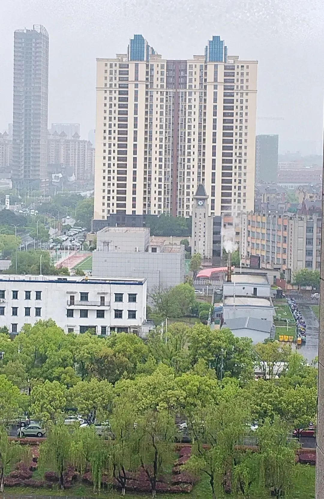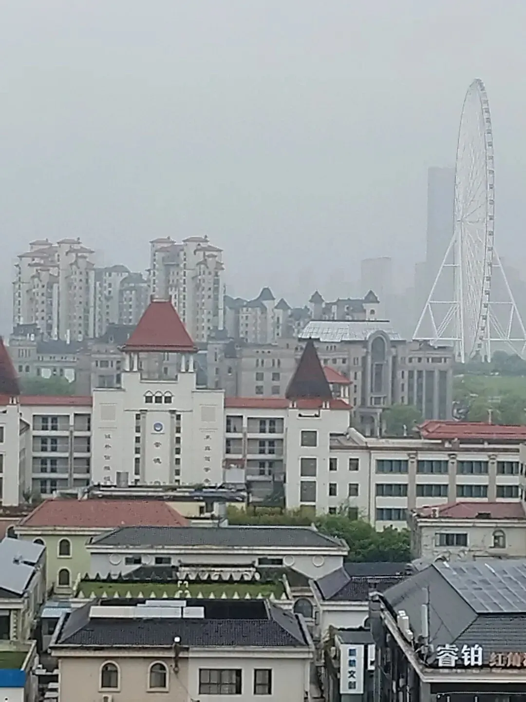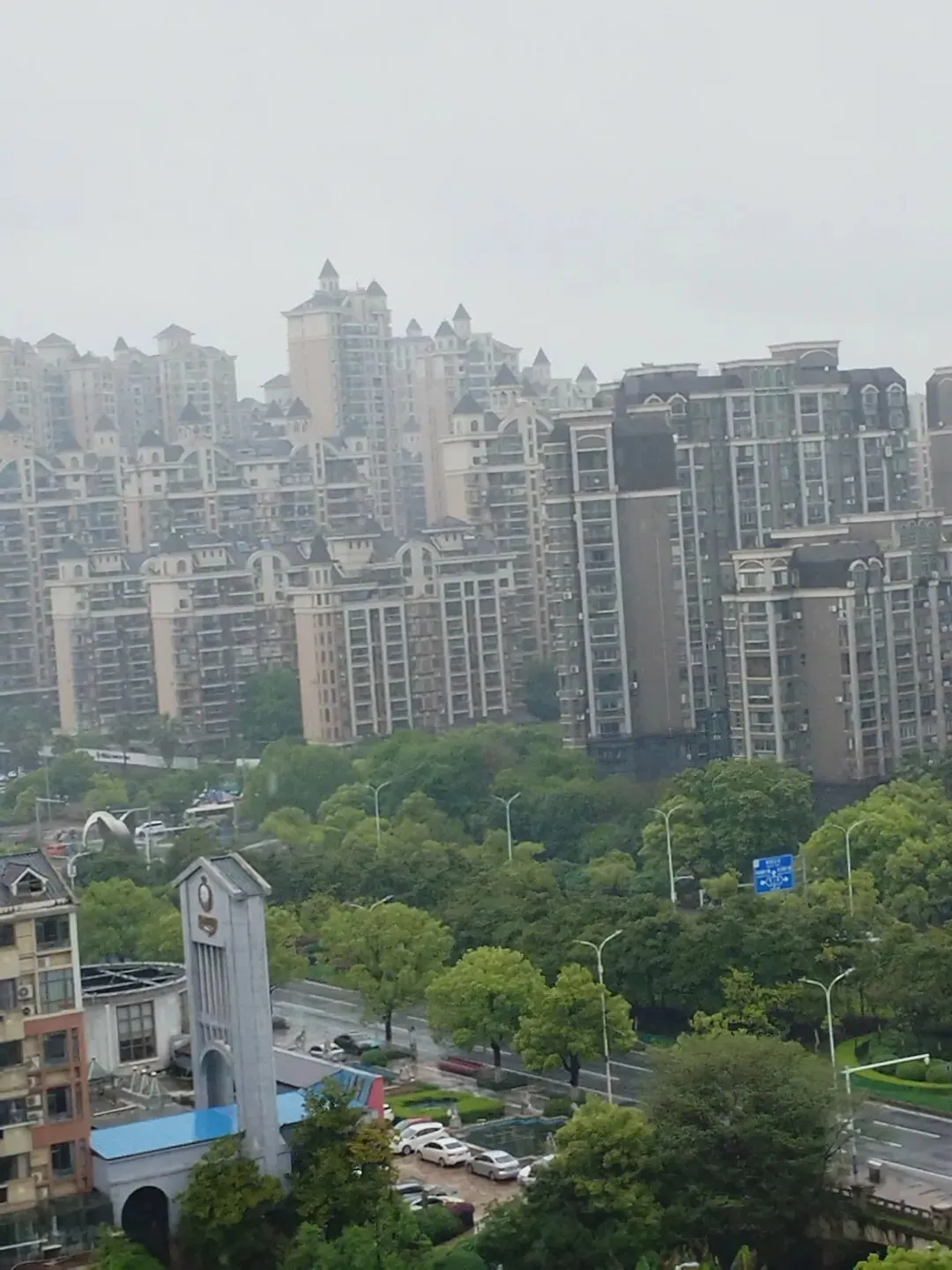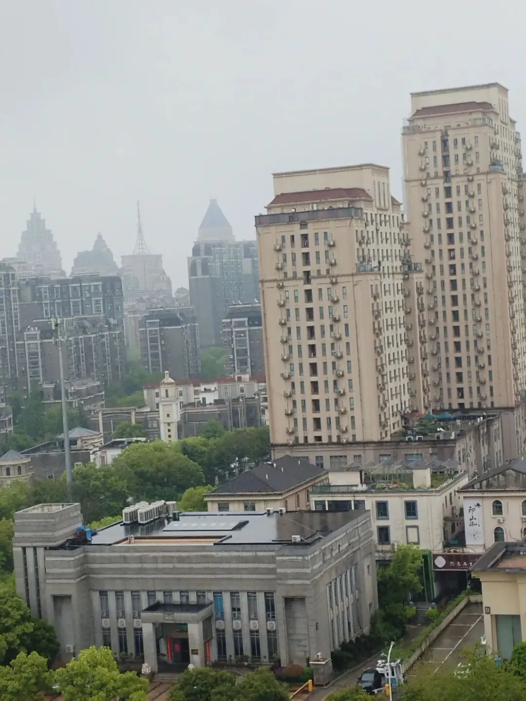 目光越过江面,老城区在雾气那头隐隐可见。滕王阁就在江边,楼阁的轮廓在晨光里格外清晰。这座楼阁建了毁、毁了建,如今这座是八十年代重修的,算算也有四十年了。从十层的高度望过去,它不再是仰视时的巍峨,而是安静地卧在城市的天际线上,和周围的高楼形成一种奇特的对话——古与今,就这么隔着千年对视。