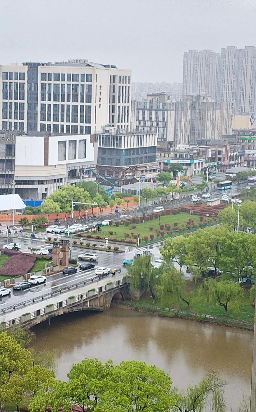 清晨,我站在南昌市希尔顿欢朋酒店的10层窗前,俯视脚下的南昌。天色刚亮,赣江上还浮着一层薄雾,像轻纱般笼着水面。红谷滩新区的楼群在晨光中渐渐显出身形——玻璃幕墙被第一缕阳光擦亮,泛着淡淡的金色,一栋挨着一栋,密密地立在江岸上。从高处看下去,八一大桥像一条灰色的长龙横跨江面,桥上的车已经多起来,缓缓地移动着。这座城市,正从睡梦中醒来。