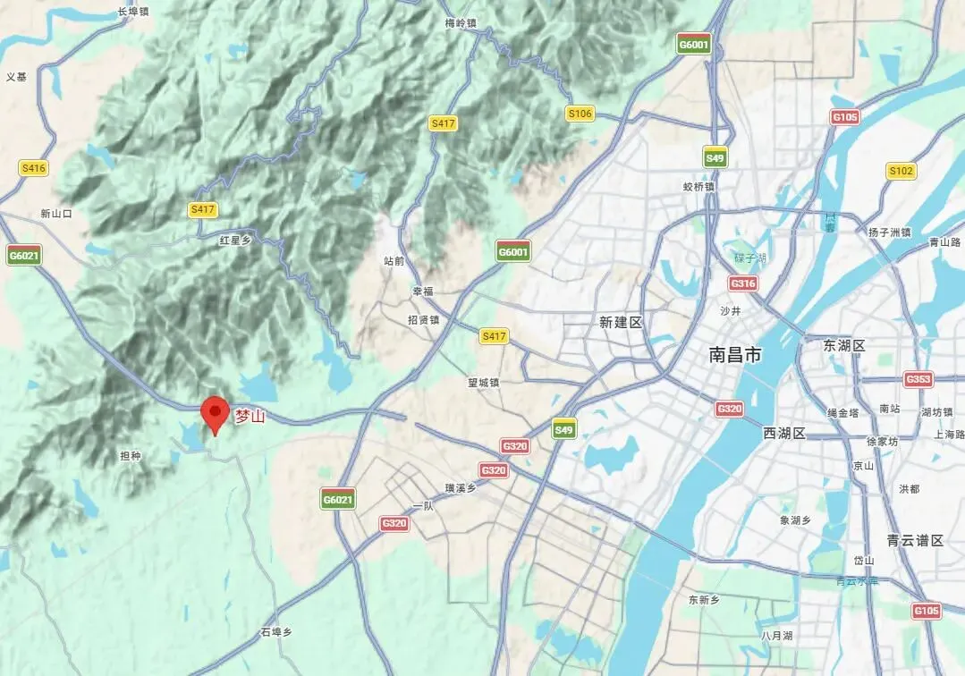 梦山位于南昌市新建区石埠镇,在西山山脉的南段(西山中段主峰区就是著名的梅岭)。梦山不高,海拔只有235.8米,但正所谓“山不在高有仙则灵”,梦山因为罕王庙与梦娘娘庙而颇具传奇。