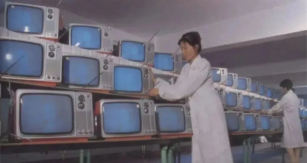 这一摞电视,小时候站玻璃外半天都舍不得走,铁灰机壳,天线上老少一根,厂里穿白大褂的阿姨正检查,能在家里摆上一台邻里都得围着来看新闻联播,调频道的时候还得轻敲两下,爸常说小孩别离近了,眼睛费,现在电视人人有,好像都没了这点稀罕劲。