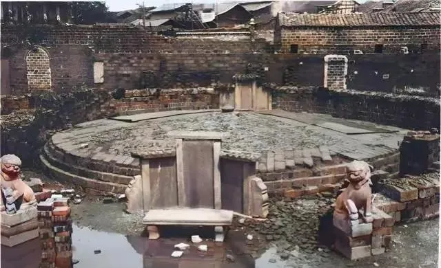 这个圆形遗址,砖垒的台基,狮子蹲在一边,是南昌老城的根基,脚底下的地面隔着百年依然结实,小时候有人挖着玩能翻出散碎青瓦和半块瓦当,据说这里很多人家世世代代没住过别处,全靠这些砖墙挡风,洪水来了围着坐一圈,城墙根下说一晚上话。