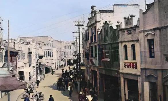 南昌的老街上,铺子林立,这张老照片里的路面算宽敞了,两边楼房带点洋气的味道,檐头上有一挂红色旗帜,还有绸缎庄的大招牌横着挂,太阳一出来,墙头上镀上一层亮光,街道里人来人往,马车黄包车都混着挤,小时候跟着大人买布,最喜欢趴在柜台边瞅花样,每隔几步就是药铺、首饰铺,哪像现在商场一道玻璃门一拦,全失了烟火味。