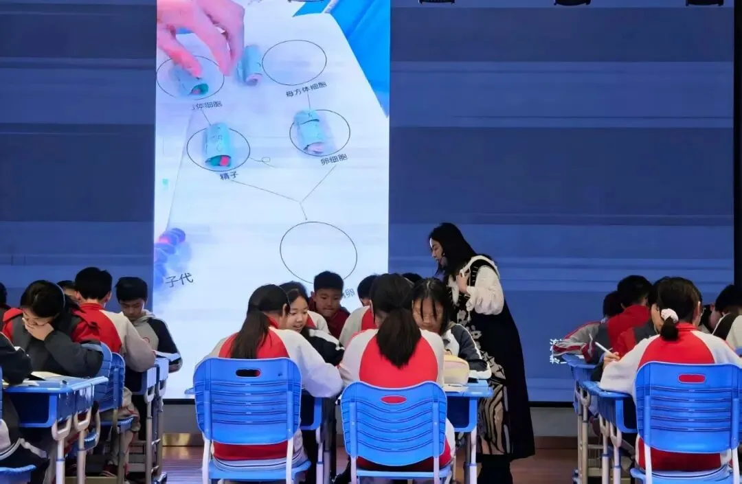为深化生物学课程改革,提升初中生物教学质量,3月31日,南昌市初中生物教研活动在我校幸福路校区举行。本次活动由我校程小武老师主持,南昌市生物学科研课坊何文韵老师与我校李海波老师共同主讲,全市各区县生物教师齐聚,围绕《模拟有性生殖过程中染色体和基因的传递》课题,共探实验教学创新路径,推动区域生物教育协同发展。
