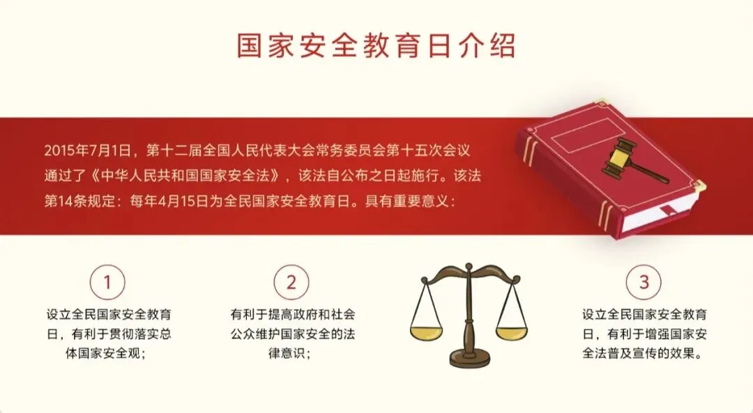 晨会上,小主持人以生动活泼的语言,向全体同学介绍全民国家安全教育日的由来:2015 年 7 月 1 日《中华人民共和国国家安全法》公布施行,明确每年 4 月 15 日为全民国家安全教育日。设立这一节日,有助于贯彻总体国家安全观、提升全社会安全意识、推动国家安全法治宣传深入人心。