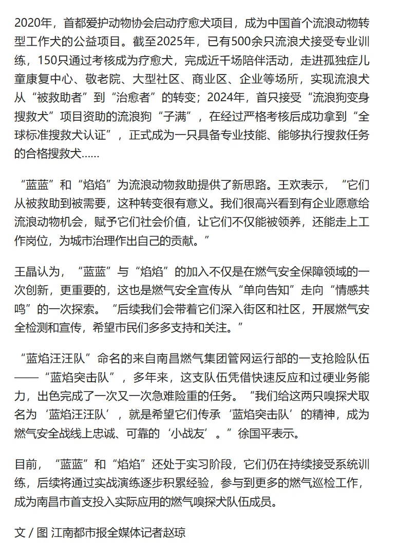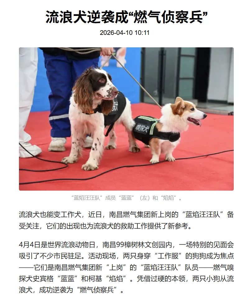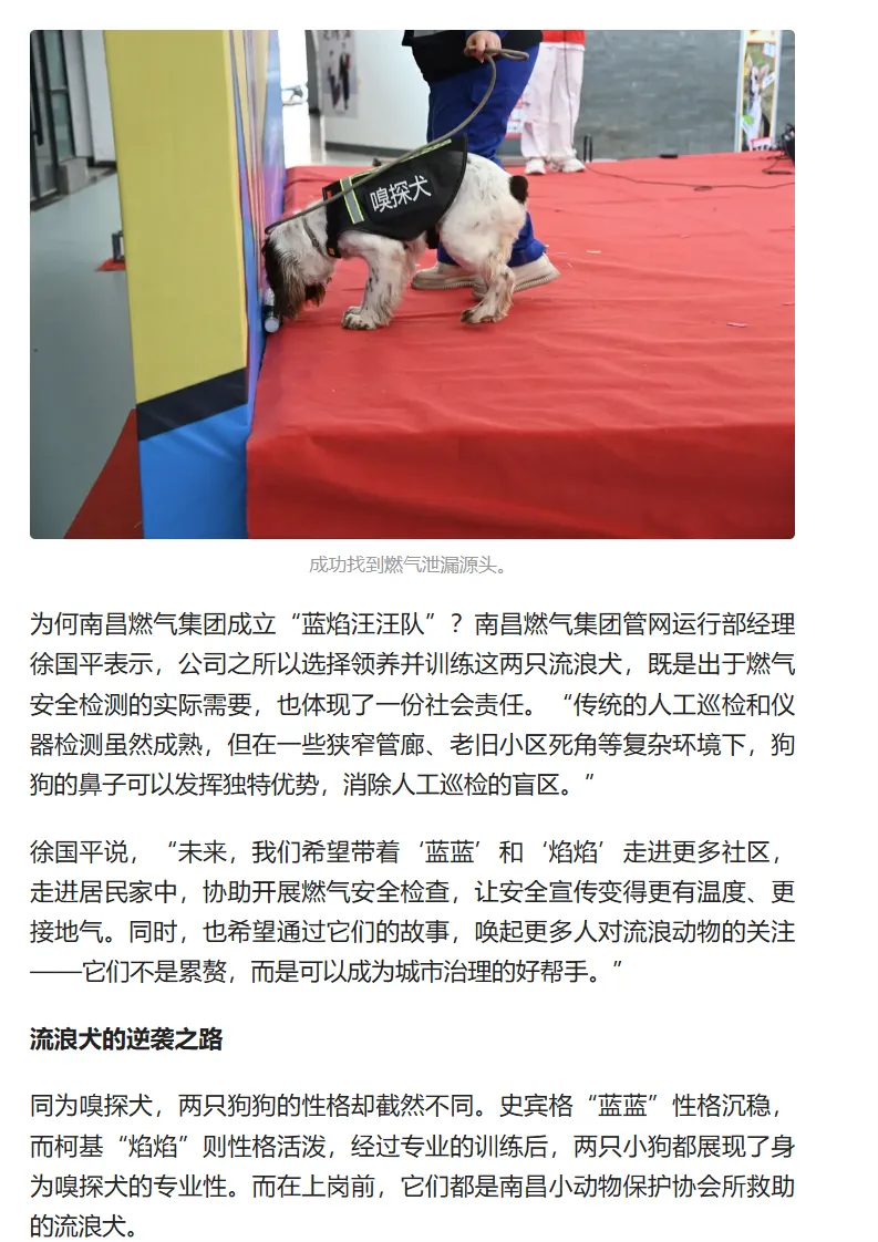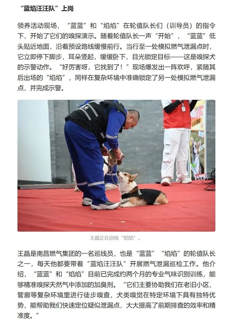 媒体报道 | 南昌燃气集团“蓝焰汪汪队”上岗啦!南昌市首支燃气嗅探犬队伍在世界流浪动物日与市民见面