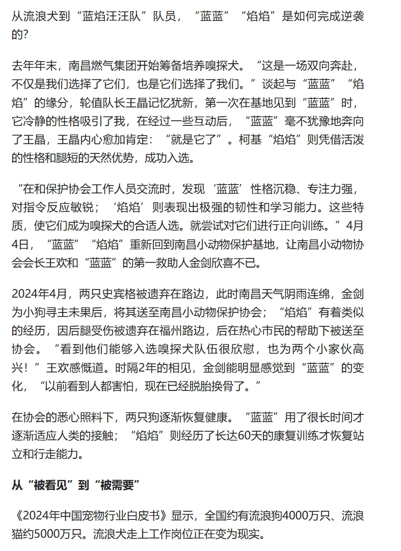 媒体报道 || 南昌燃气集团“蓝焰汪汪队”上岗啦!——全市首支燃气嗅探犬队伍在世界流浪动物日与市民见面(三)