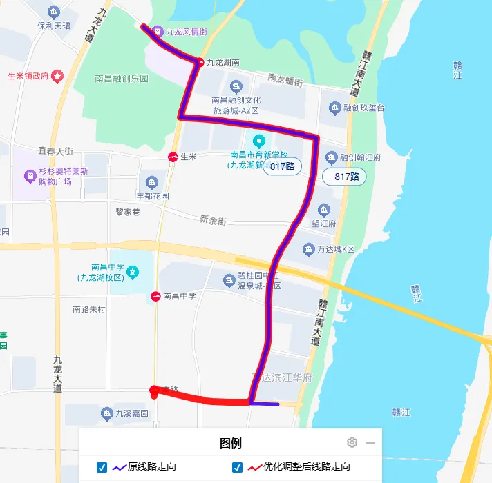 1.原线路走向:复兴大道东—莲塘北大道—莲塘中大道—莲塘南大道—迎宾南大道—105国道—通江大道—冈兴段;