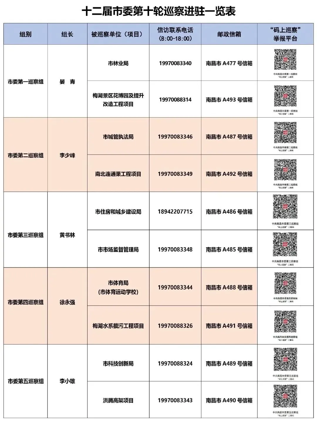 根据南昌市委统一部署,截至4月8日,十二届市委第十轮巡察完成进驻工作。市委5个巡察组将对7个单位党组织开展巡察“回头看”,对4个项目建设、管理情况开展机动巡察。