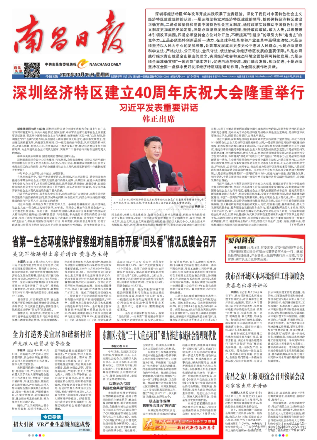 今年以来,东湖区以区委为统领,发挥政府、社会、公众治理社会的合力,坚持以人民为中心,以项目为抓手,以创新为动力,以实效为目标,精心实施“三十大重点项目”,统筹推进市域社会治理现代化工作,使群众的获得感、幸福感、安全感更加充实。