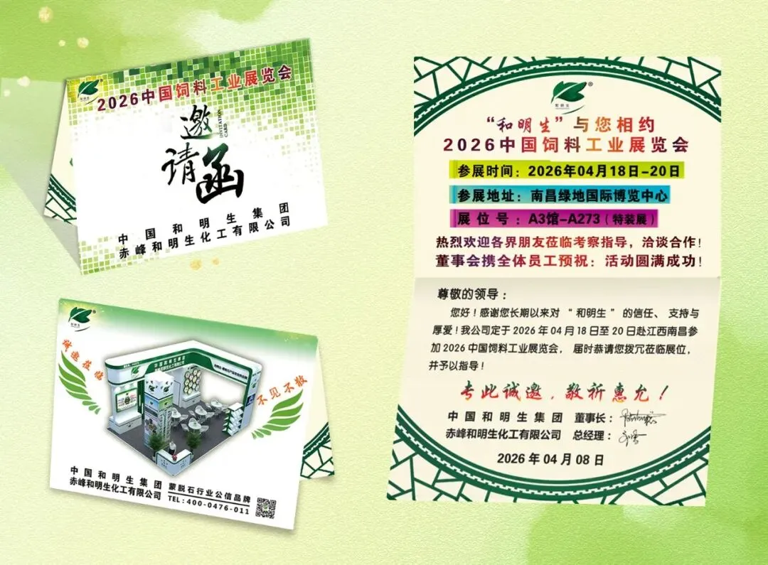 您好!感谢您长期以来对“和明生”的信任、支持与厚爱!我公司定于2026年04月18日至20日赴江西南昌参加2026中国饲料工业展览会,届时恭请您拨冗莅临展位,并予以指导!