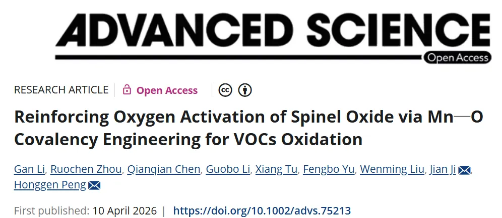 工业排放的VOCs成分复杂,包括含氧VOCs和轻质烷烃等,其分子内含有稳固的C=O、C─C、C─H化学键,在低温下通过氧化断裂这些化学键极为困难,根本原因在于催化剂形成活性氧物种(ROS)的氧活化能力不足。研究者们广泛尝试贵金属(Pt、Pd)和过渡金属氧化物催化剂用于VOCs氧化。尽管贵金属催化剂性能优异,但开发低成本、高效率的替代方案更具实际意义。尖晶石氧化物(AB2O4)因其可调的组成和价态、灵活的电子构型以及在苛刻条件下良好的结构稳定性,为调控氧活化过程(包括分子氧和晶格氧的活化)提供了有效途径。在VOCs的非均相催化氧化中,氧活化涉及分子氧的吸附和解离,以及晶格氧的动态迁移和再生。已有研究通过晶面工程、金属掺杂和缺陷调控等策略调控了尖晶石氧化物的氧活化能力,但这些策略主要依赖空位构筑。从分子轨道的视角来看,调控金属-氧共价性有望成为同时促进分子氧和晶格氧活化的有效途径。但目前在尖晶石催化剂上两者同时被活化的机制尚不明确。