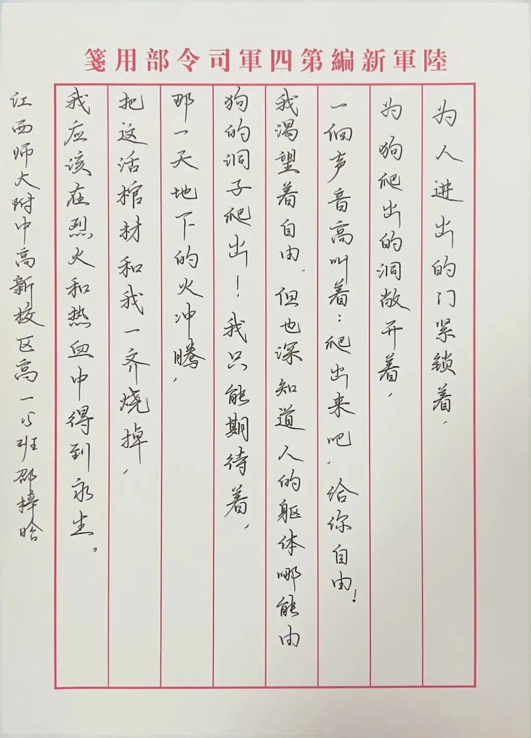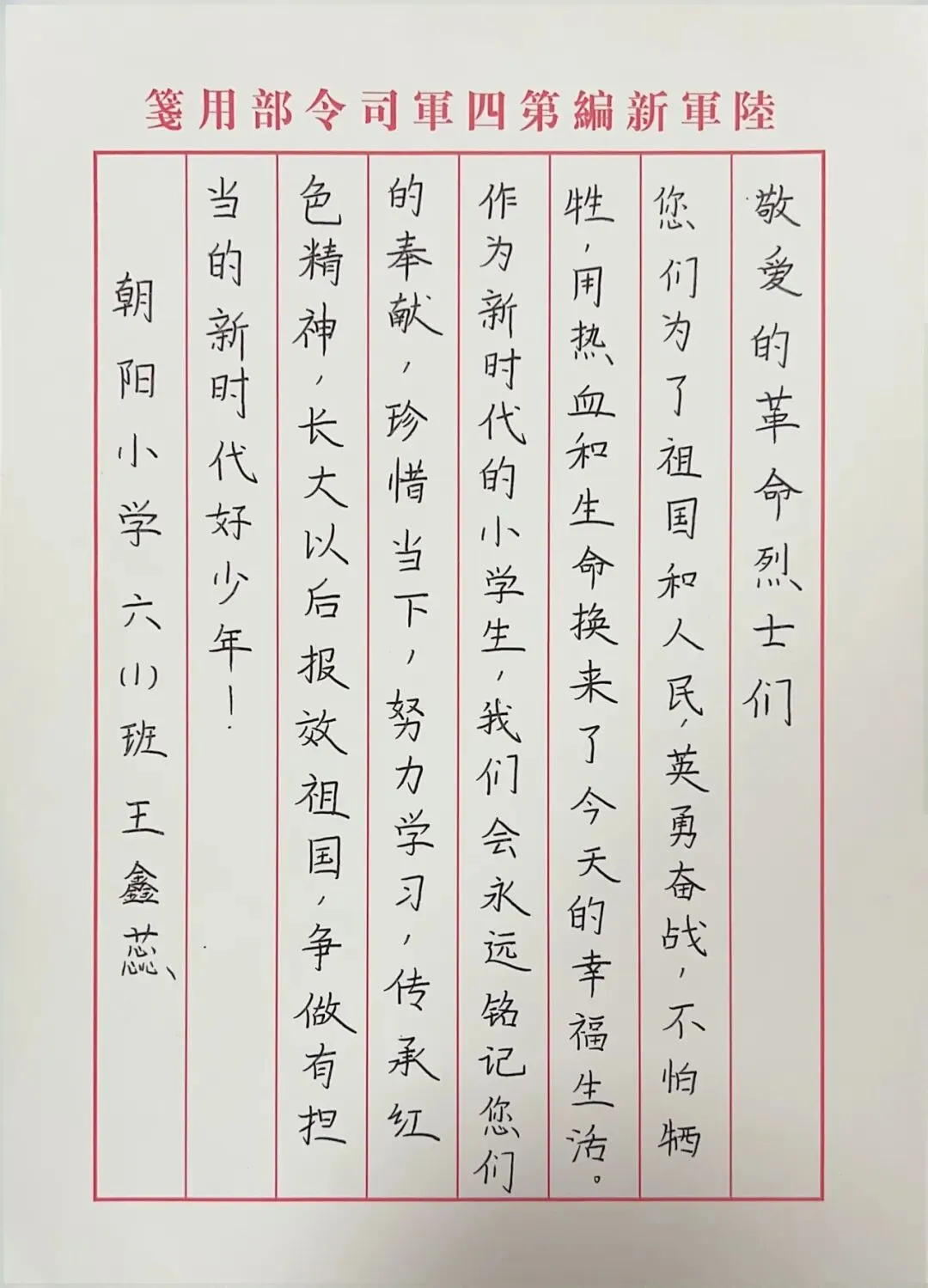 字迹稚嫩却坚定,文风朴实而深情,字里行间满是新时代青年对革命先辈的告慰,是跨越时空的心灵对话,是红色基因的代代相传。
