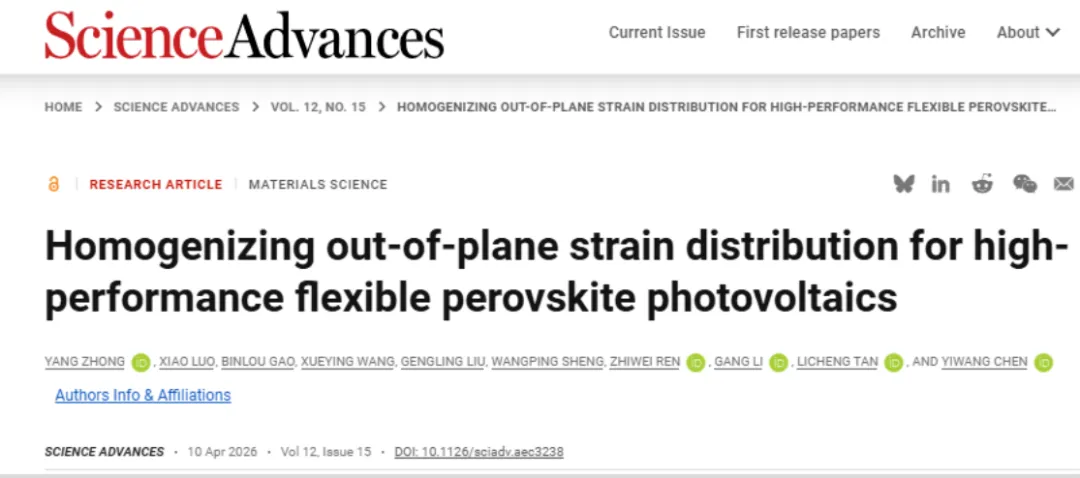 效率26.59%!南昌大学团队SA:面外应变均匀化策略制备高效钙钛矿器件