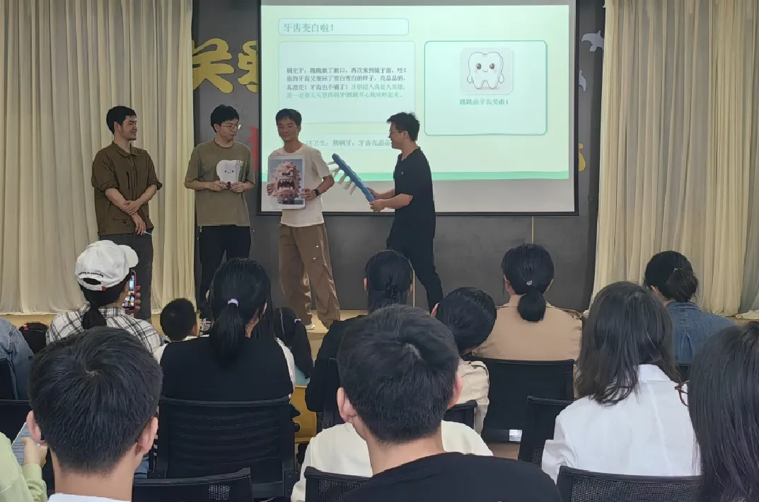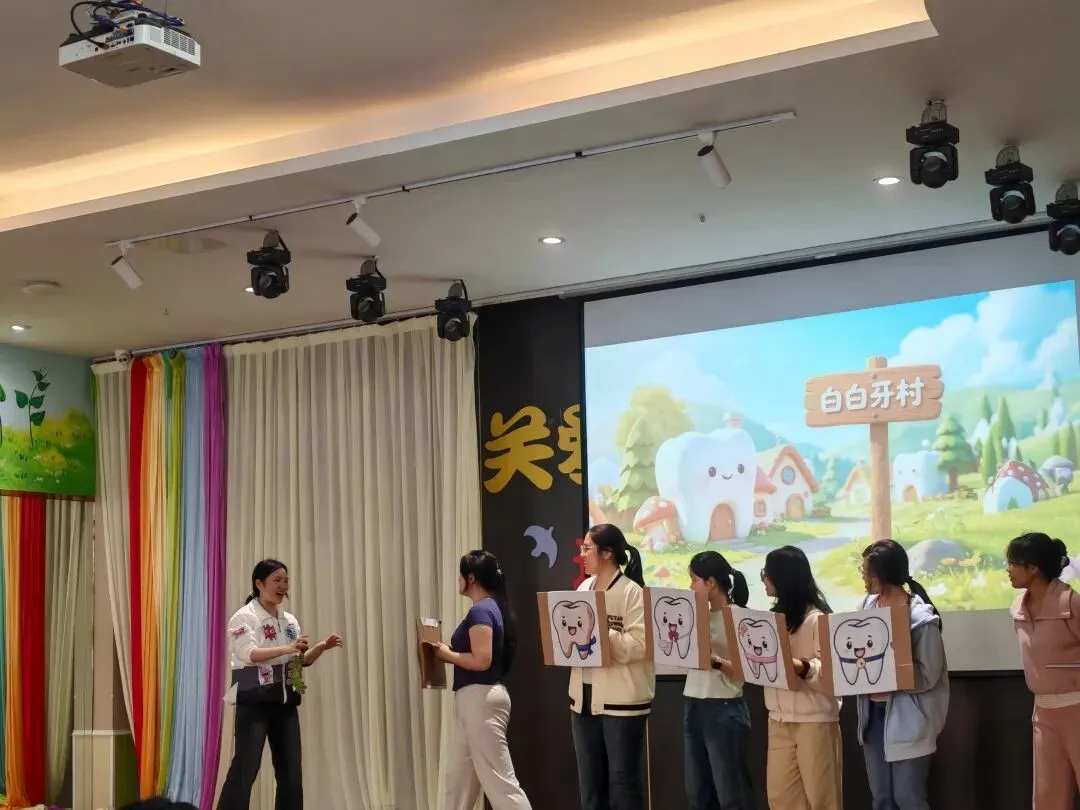 活动现场,医护团队上演《森林的牙齿小卫士》《给牙齿穿衣服-窝沟封闭》《喜牙牙和灰太菌之牙村守卫战》《打败口腔三坏蛋》等护牙主题情景剧,通过角色扮演、情景互动,生动演绎爱牙护牙知识,让幼儿在欢乐中树立护牙意识,掌握基础护牙技能。