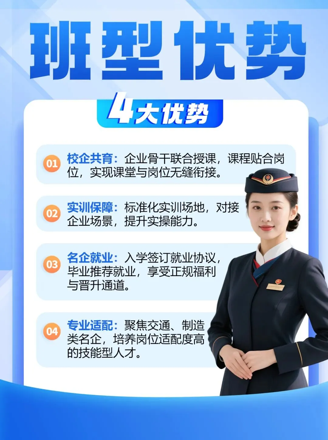学校自创办以来一直专注铁路人才培养,是目前江西颇具特色的一所以轨道交通类为主的中等专业学校。学校已开设铁道运输服务、电气化铁道供电、电力机车运用与检修、工业机器人技术应用、航空服务、机电技术应用、新能源装备运行与维护、数字媒体技术应用等主要专业,涵盖装备制造、交通运输、电子信息等三大类专业。教育始于初心,成果源于用心,学校先后获得“南昌市优秀等级学校”“1+X证书联盟牵头学校”“江西省教育系统先进集体”“南昌市教育系统立德树人综合考核一等奖"等诸多荣誉。学校有五个专业被评为南昌市职业教育“精品特色专业”,三个工作室被评为“技能名师工作室”,学校多年来的办学成果备受社会赞誉,被誉为学生满意、家长放心的铁路轨道交通人才培养的摇篮!