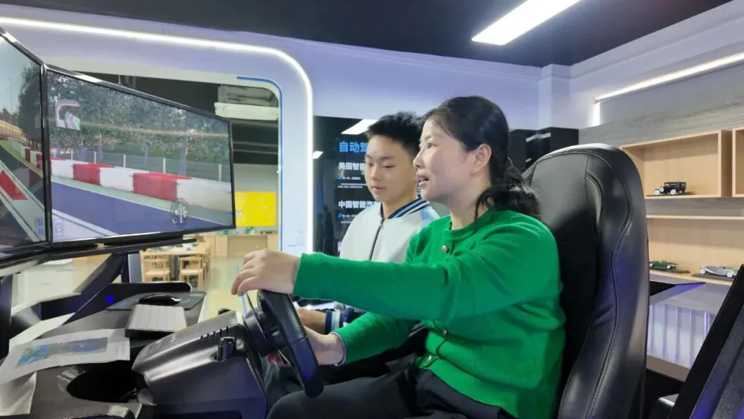 交流团一行实地走访了学校汽车整车维修实训中心、上汽大众教学实训基地、虚拟仿真实训基地、车辆检修综合实训中心等实训基地,参观了红色汽车文化体验馆、汉文化馆,皮雕、陶艺社团等学生活动中心。面对真车实练的场景、科技感十足的基地、琳琅满目的学生创意作品、活力满满的舞龙舞狮训练,交流团不时驻足询问、仔细观摩、拍照留念。在学生志愿者的指导下,部分交流团成员还亲身体验了虚拟驾驶、漆扇制作,身临其境的感觉让他们对学校的教育教学方式赞不绝口。