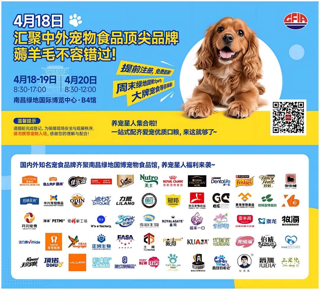 我们的展位B4P291也准备了超多惊喜,不仅有高性价比的宠物粮试吃、专属折扣,还有专业的营养师现场答疑,帮你精准匹配毛孩子的饮食需求,新手铲屎官也能轻松上手!