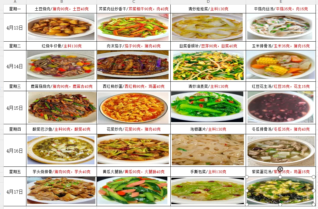 南昌县莲塘第二小学一周菜谱公示(4.13-4.17)