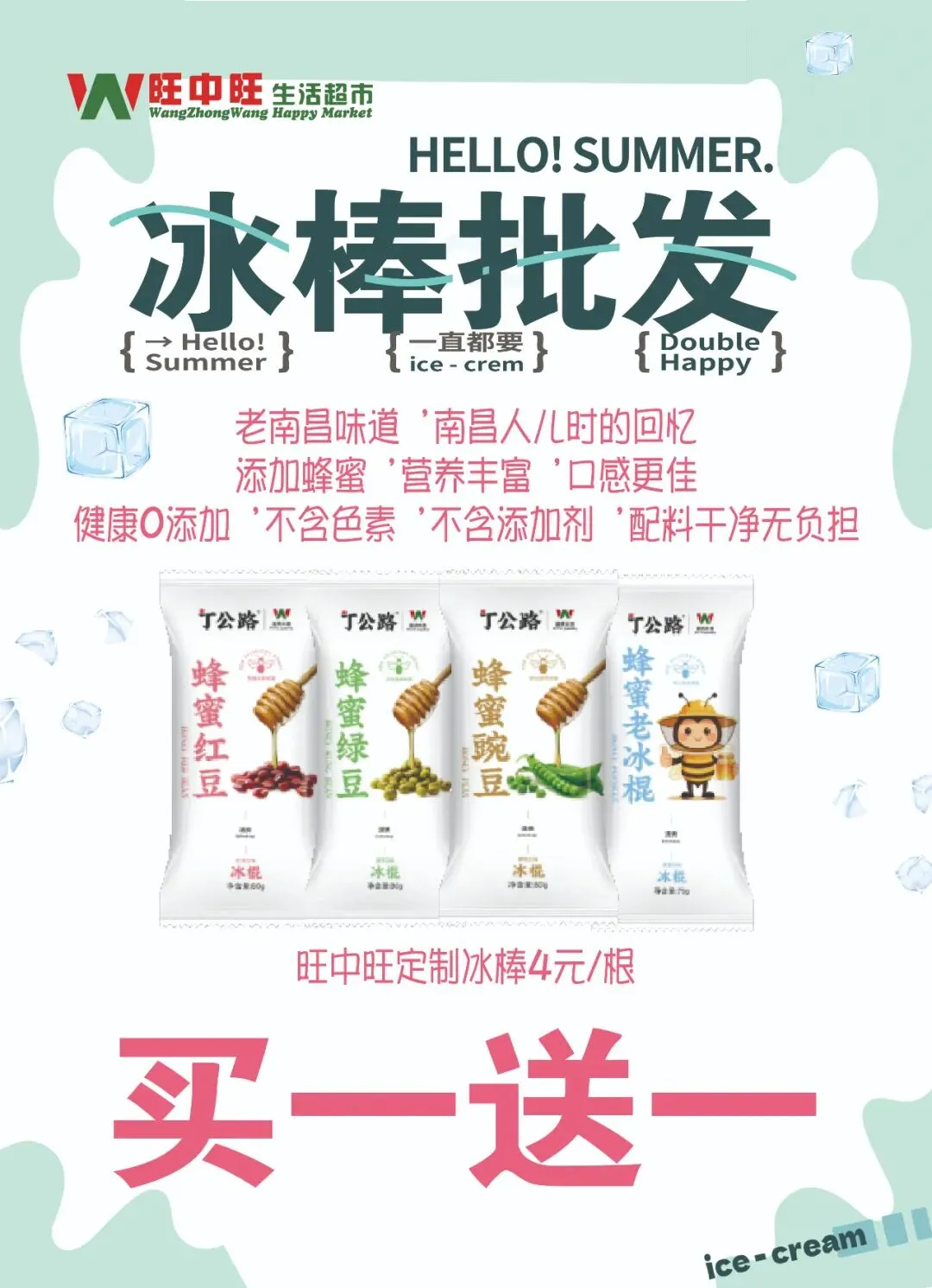 🔥 旺中旺专属定制冰棒,4 元 / 根,买一送一!