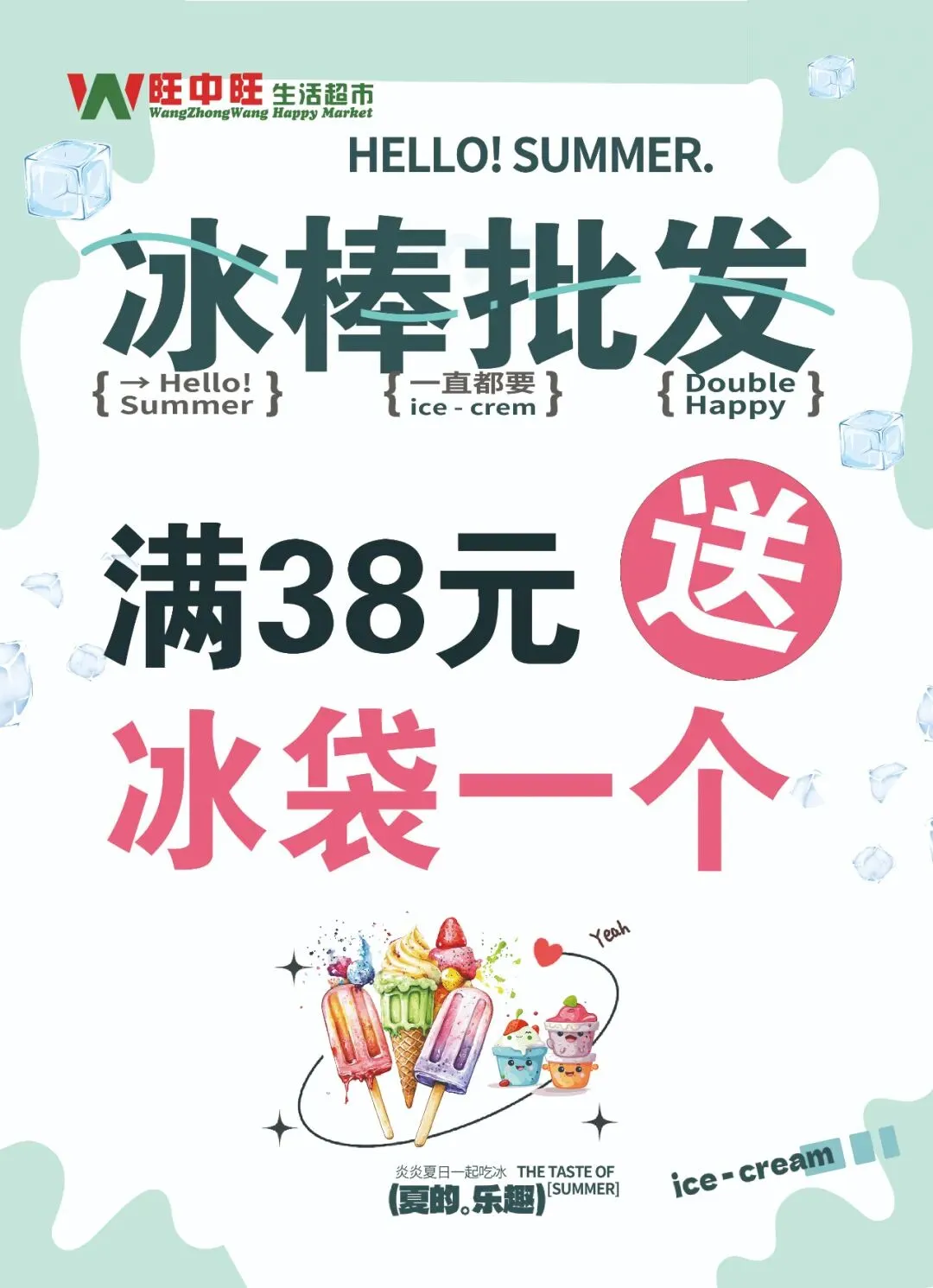 全场冰棒买满 38 元,免费送保温袋 1 个!
