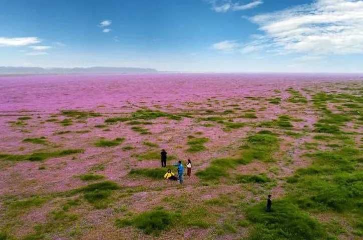 蓼子花其实是鄱阳湖区一种最常见的野花,鄱阳湖水退去后,蓼子花就会很快生长起来,形成一片紫色花海,同时出现的还有大片草洲,这可能是离南方人民最近的一片青青草原。