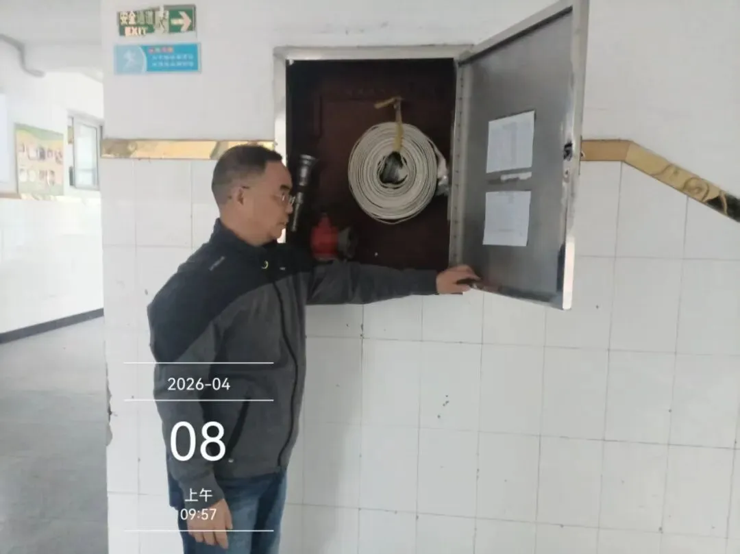 排查组以“防患于未然”为原则,对校园重点区域展开细致排查。在消防安全方面,逐一检查各楼层消防栓,确认阀门开关灵活、水压充足、水带水枪完好无损,确保消防设施关键时刻“拿得出、用得上”。同时,对校舍栏杆、楼梯扶手的牢固性进行全面核验,排查是否存在松动、锈蚀等风险;细致检查操场设施,确保运动器材稳固、边角无尖锐凸起,为学生提供安全的活动空间。