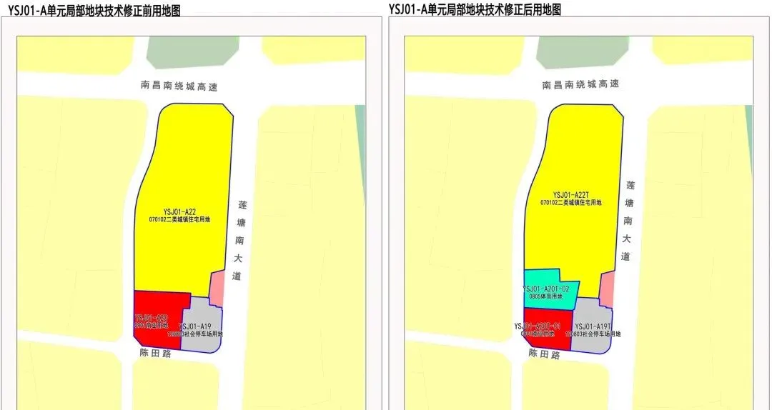 近日,南昌县自然资源和规划局公示了多个地块规划调整。其中《南昌县中心城区银三角片区(YSJ01-03单元)详细规划》YSJ01-A单元局部地块详细规划技术修正方案: