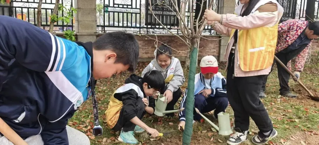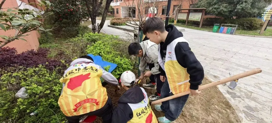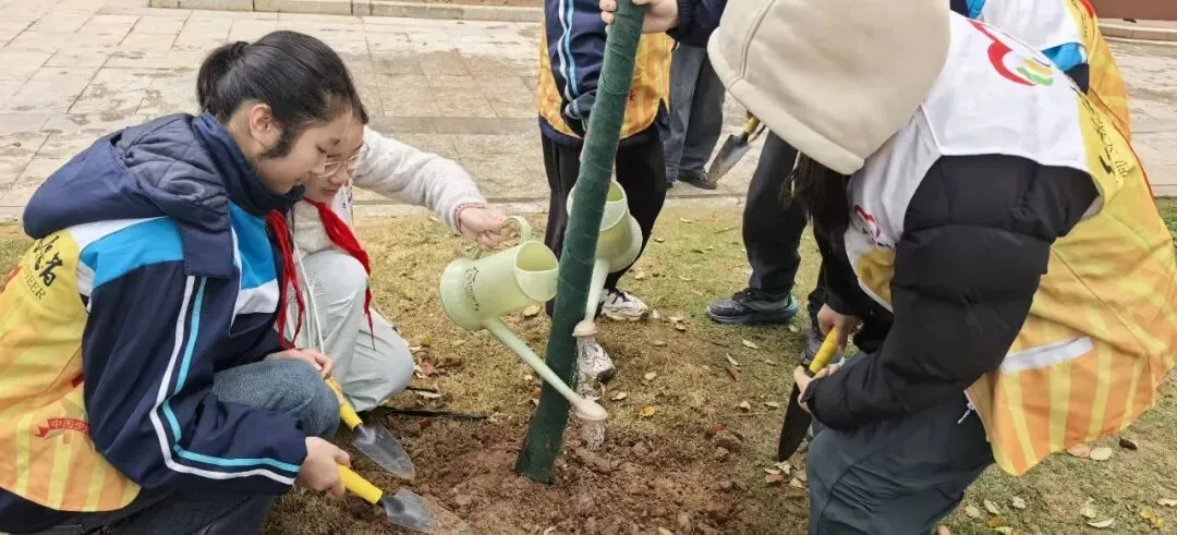 志愿者们整齐列队,前往校内指定植树区域开展植树实践。大家领取树苗、铁锹、水桶等工具,以小组为单位分工协作,挖坑、放苗、扶正、填土、浇水,每一个步骤都认真细致、有条不紊。植树结束后,大家主动清理现场垃圾、归还工具,用实际行动践行环保理念,为校园增添一抹盎然新绿。