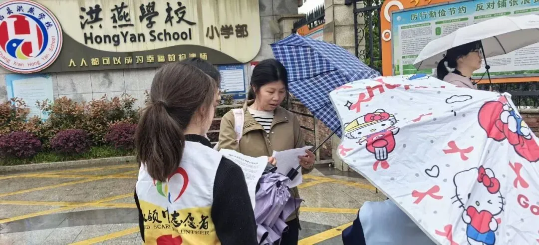 植树活动结束后,在班主任与科任老师的带领下,志愿者们有序前往周边社区开展文明祭扫宣传活动。同学们分组向社区居民发放倡议书,耐心讲解绿色、安全、文明的祭扫方式,倡导大家摒弃陋习、守护生态,用实际行动传递清明新风尚。在整个宣传过程中,学生们举止文明、积极主动,充分展现了洪燕学子良好的精神风貌,获得了社区居民的一致认可。