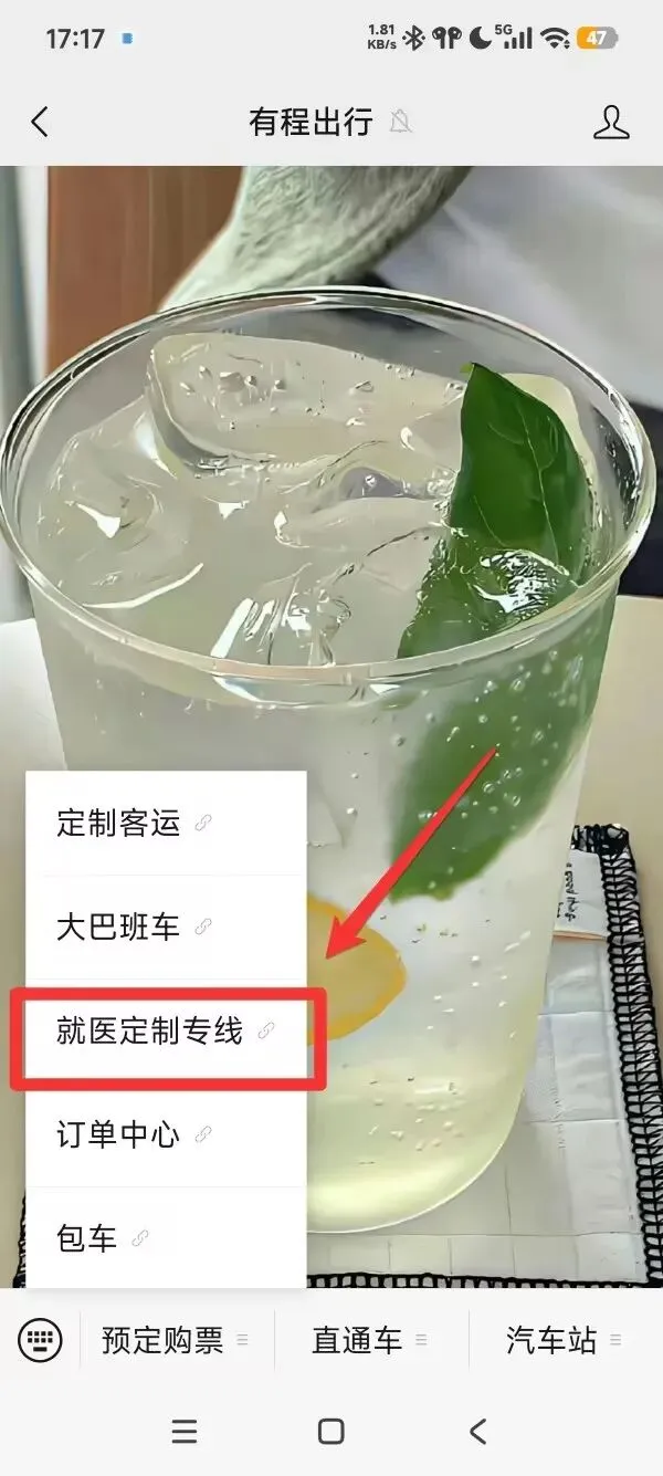 2、点击菜单:预定购票--就医定制专线;
