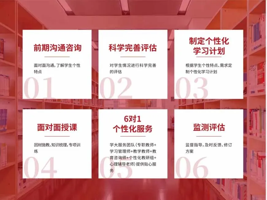个性化针对每一位学生进行试卷分析结合试卷难易程度,找出得失分点,分析原因,调整计划措施,帮助孩子认知现下,明确突破方向,定期表彰进步学员、态度积极学员、优秀学员等,多维度给予学生认可和鼓励,树立榜样,发现亮点。