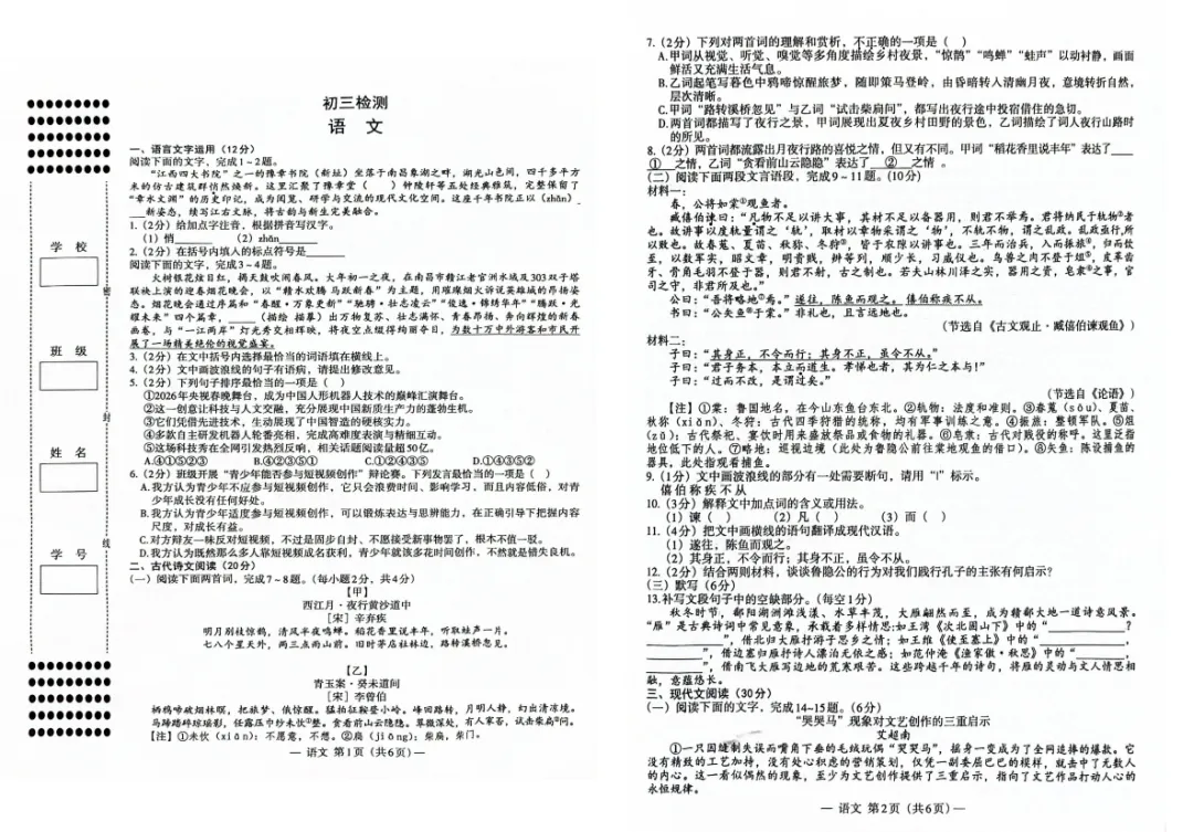 新鲜出炉!2026南昌初三一模试题&答案出炉!