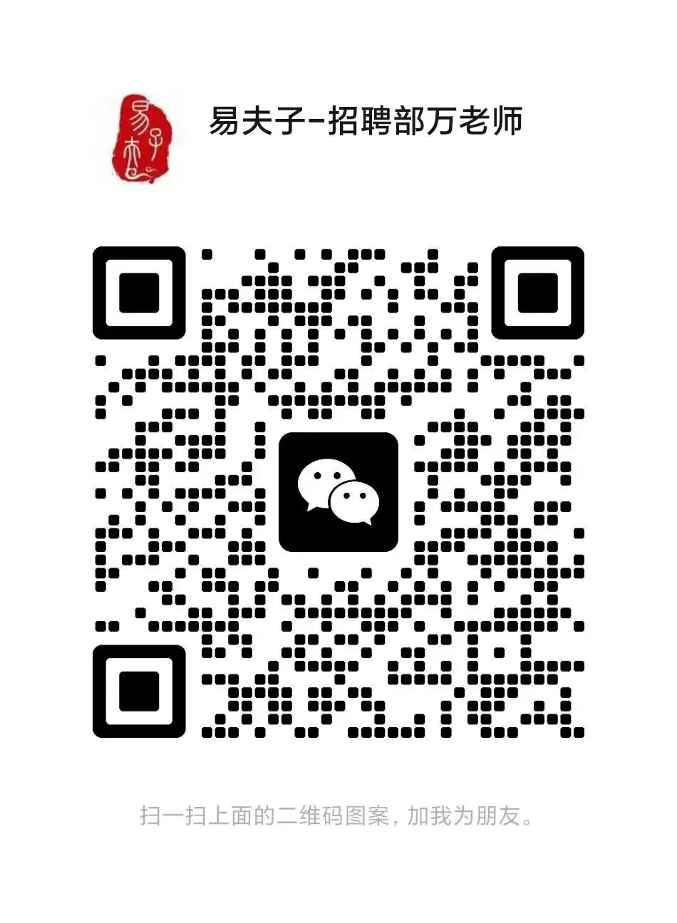 本次报名采用线上提交材料方式,应聘人员将所有报名材料整理为一个压缩包(压缩包命名格式:姓名+应聘岗位+联系电话),发送至易夫子老师(文章底部有老师微信)。