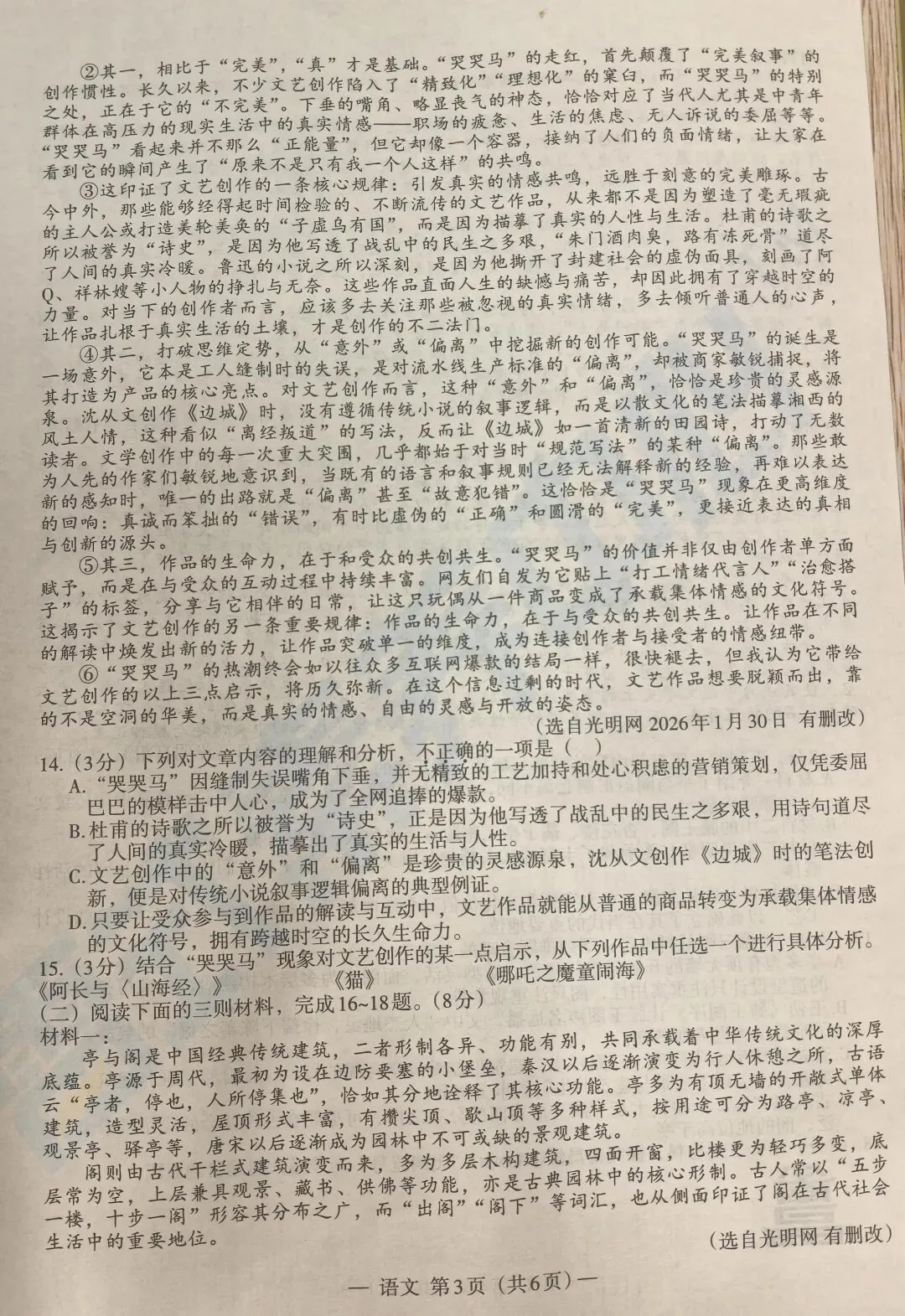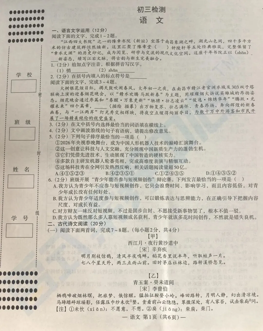 新鲜出炉!2026南昌初三一模试题&答案出炉!