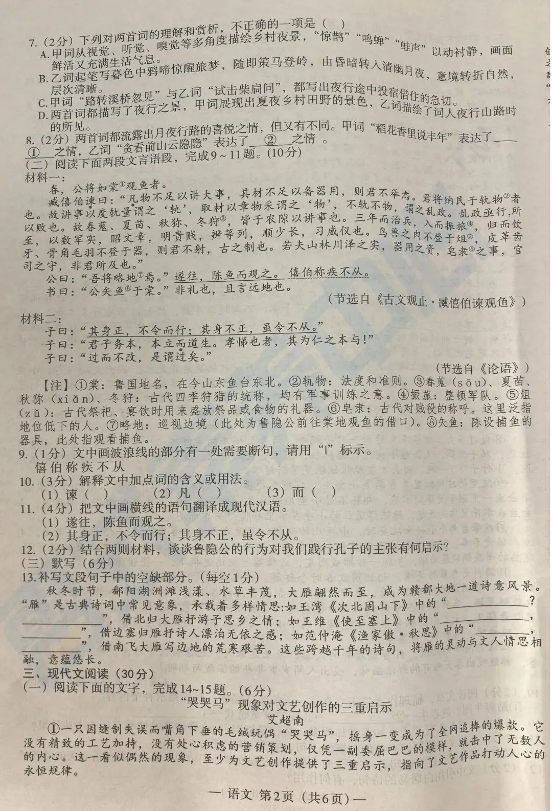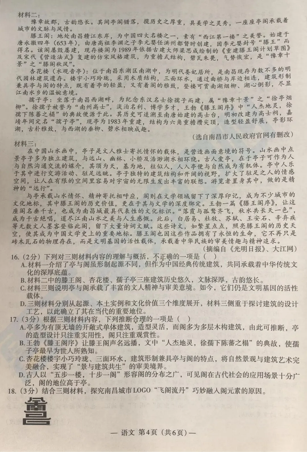 今天南昌一模考试,上午语文,刚考完没多久,就看到各中考群里面就发出了语文试卷,从“