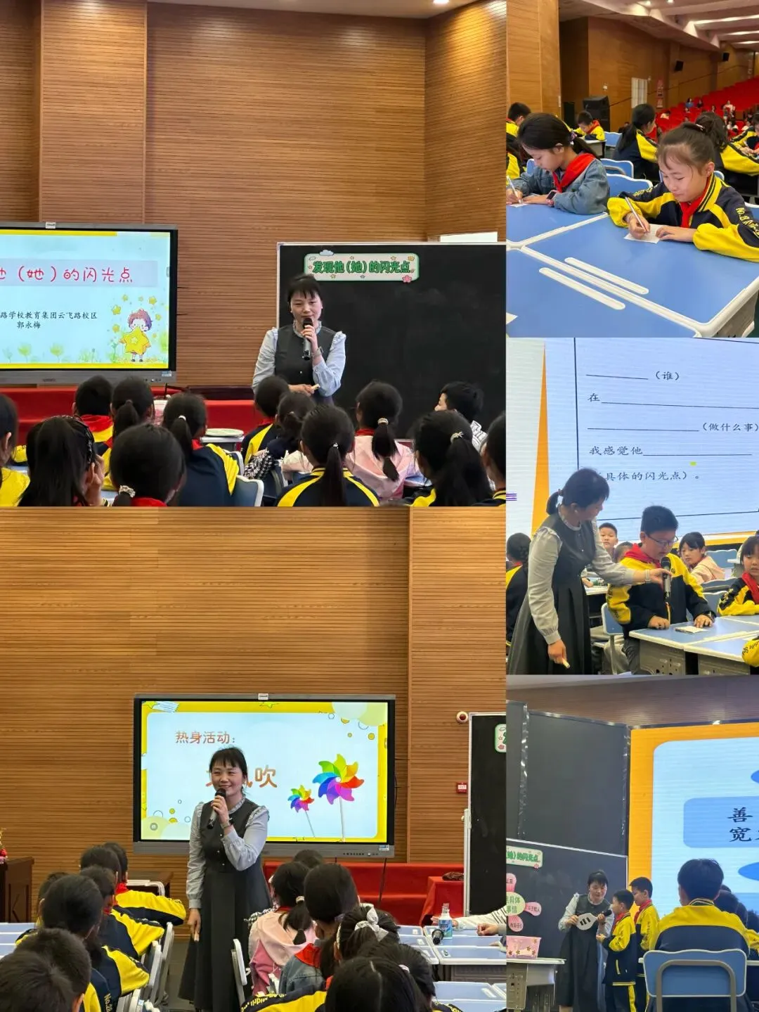 随后,两节优质示范课精彩开讲。南昌市站前路学校教育集团云飞路校区郭永梅老师带来四年级《发现他的闪光点》,通过“大风吹”热身、闪光点发现卡、细节放大镜、发现赞美会等趣味环节,引导学生多维度挖掘同伴优点,学会以欣赏的眼光建立和谐同伴关系;朱悦老师为八年级学生呈现《捕捉时间精灵》,以“魔法师说”导入,结合时间四象限管理法,帮助学生科学规划时间、提升自律能力,为青春期成长赋能。