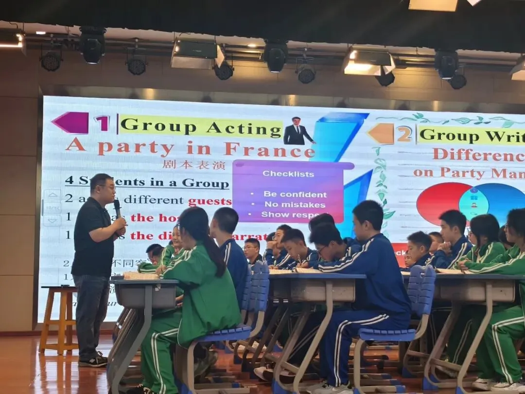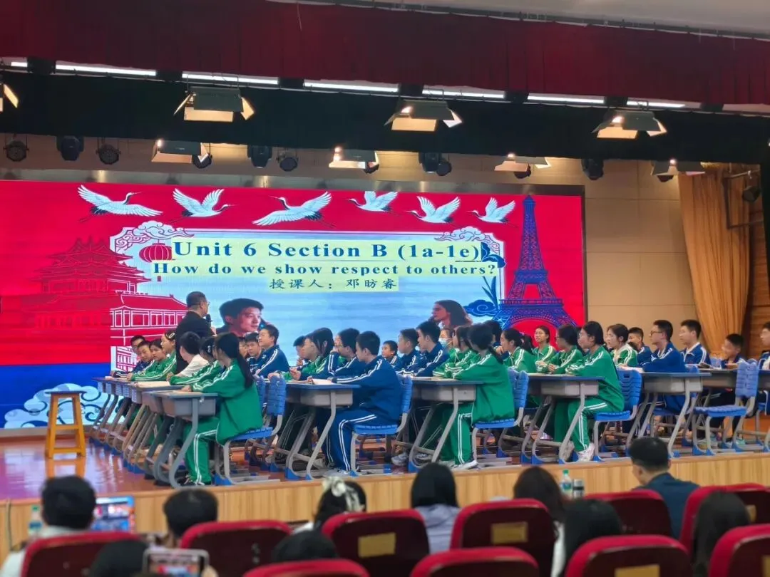 随后,南昌上海凤凰城外国语学校邓昉睿老师呈现Unit 6 Section B How do we show respect to others?阅读课。本课以法国派对礼仪为主题,依托电子邮件文本展开教学,课堂逻辑清晰、层层递进: