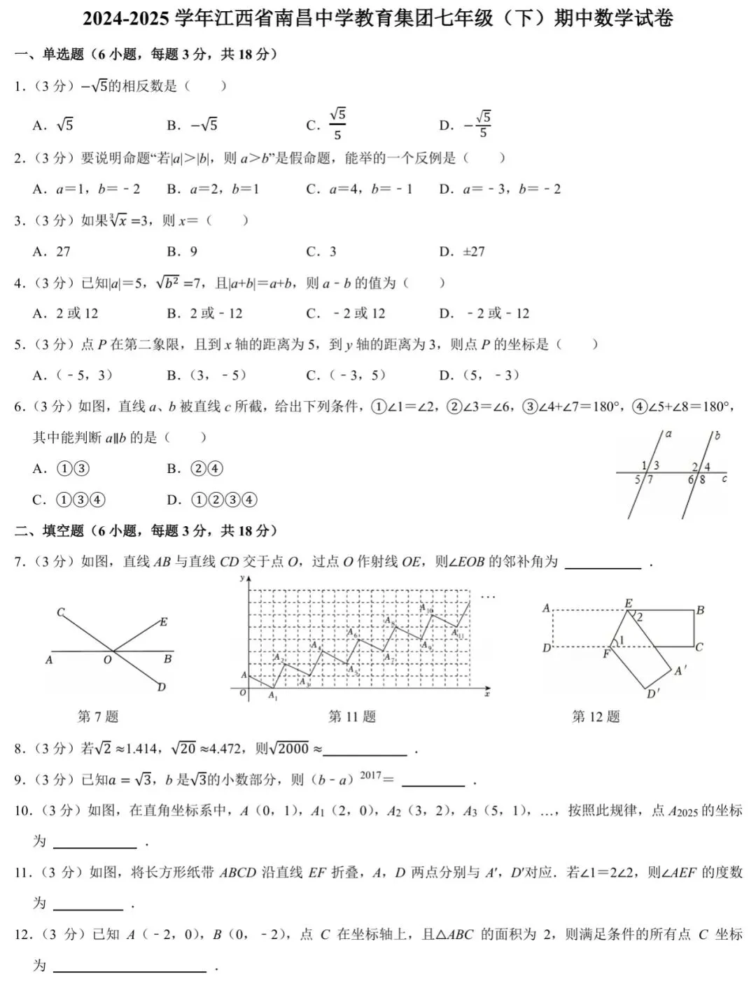 已更完2015-2025年七、八、九年级南昌县、市期末试卷